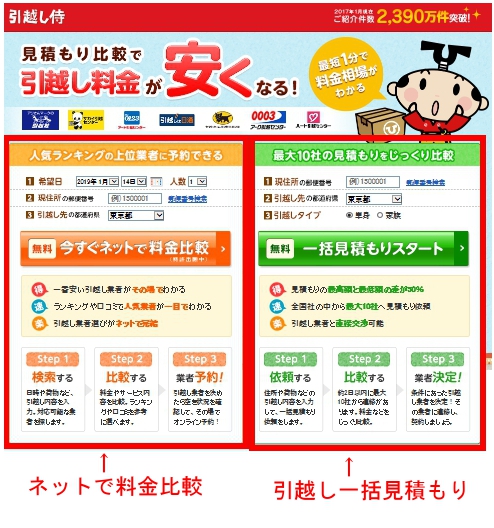 上記ランキングに載せた「引越し侍」のリンク先も、よく見ると2パターンが出ていました。